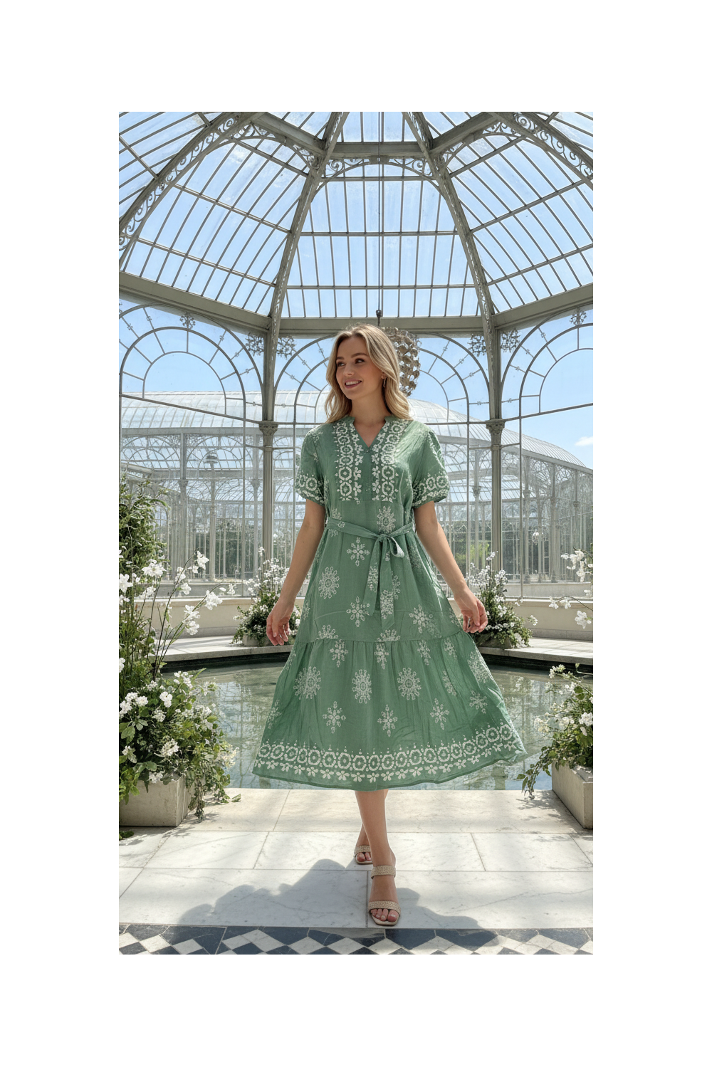 VESTIDO ESTAMPADO VERDE CINTURÓN