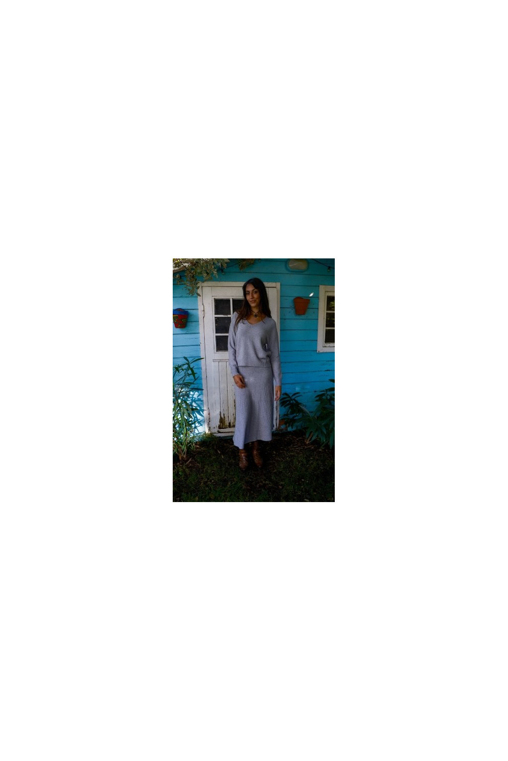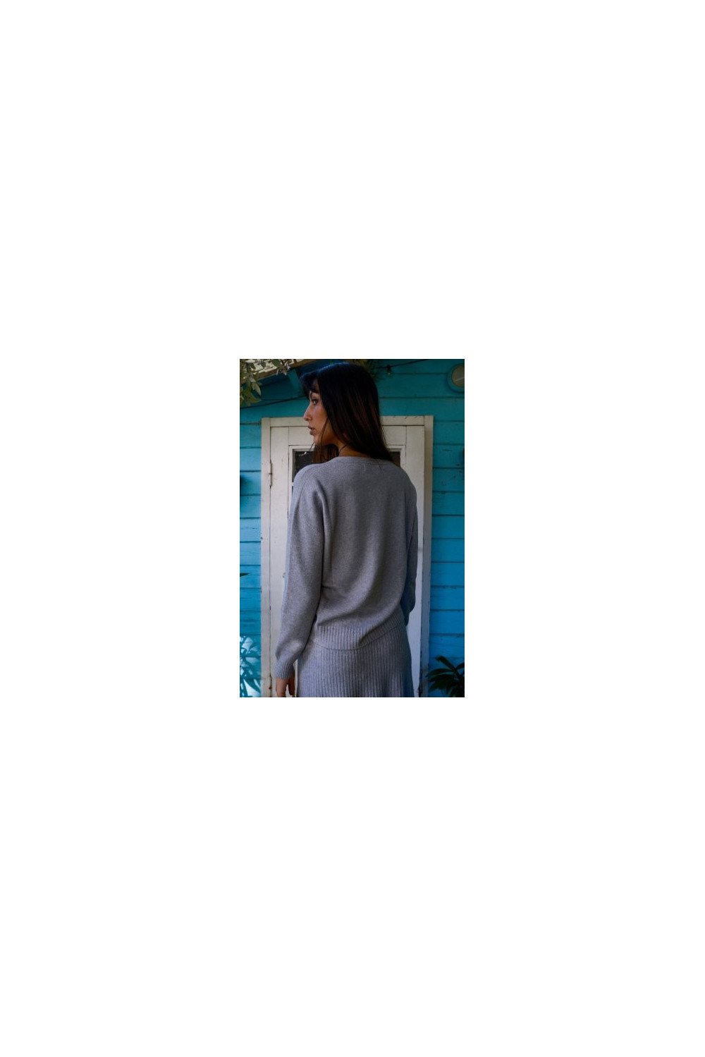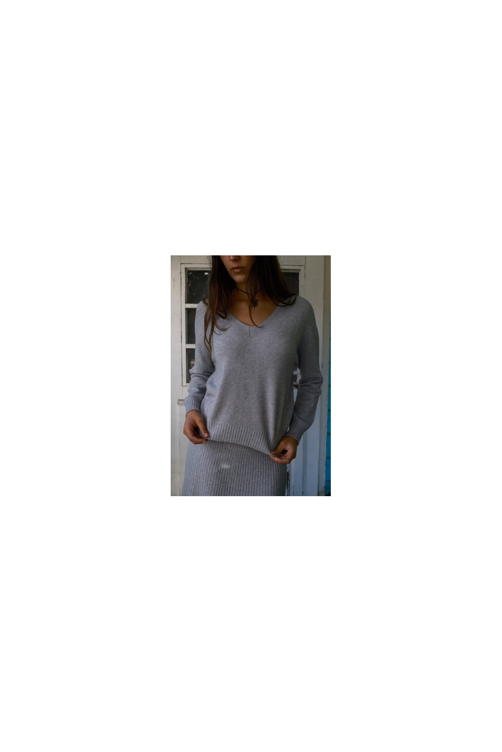 Jersey punto , color gris en cuello pico. Talla única.