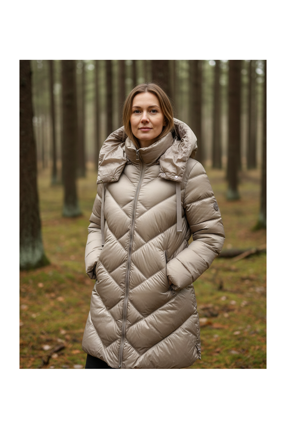 Anorak beige con capucha desmontable. Bolsillos laterales. Cierre en el delantero con cremallera.