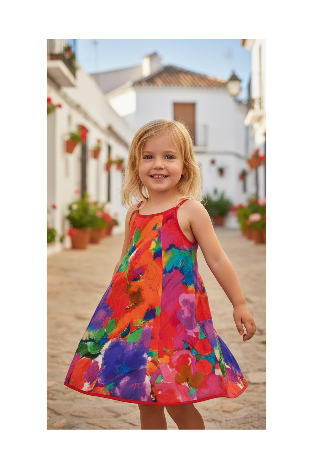 Vestido estampado multicolor de tirantes.