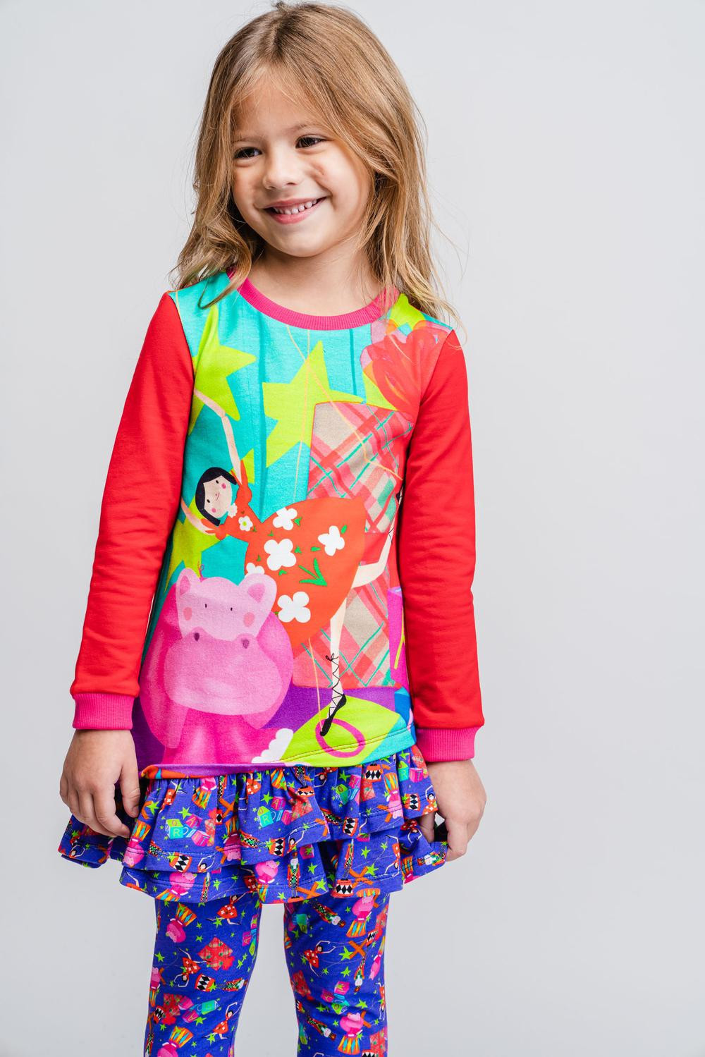 Túnica tipo vestido de manga larga y cuello redondo adorno de volantes en la parte baja