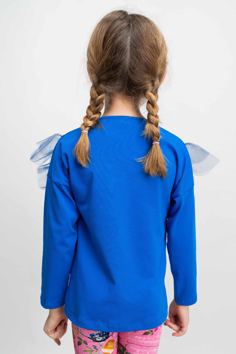Túnica de manga larga, hombro caído y volantes de tul en hombros hasta cuerpo de punto camiseta liso en azul