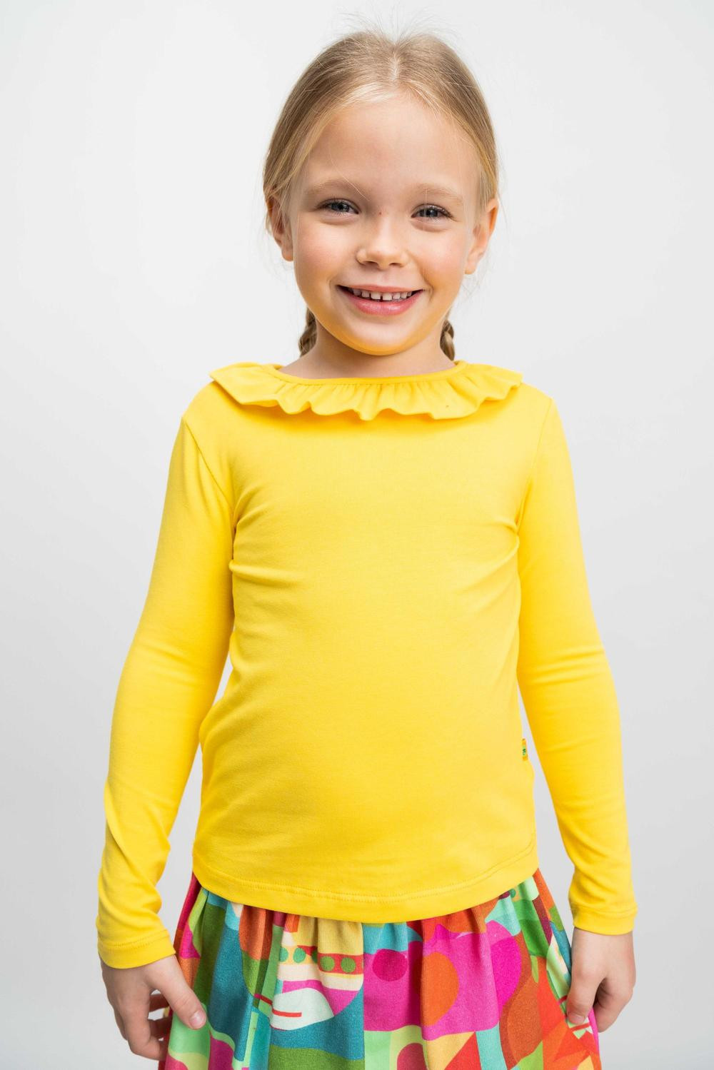 Camiseta de manga larga y cuello redondo adornado con un volante fruncido con cierre de lágrima en la espalda de punto camiseta en color amarillo