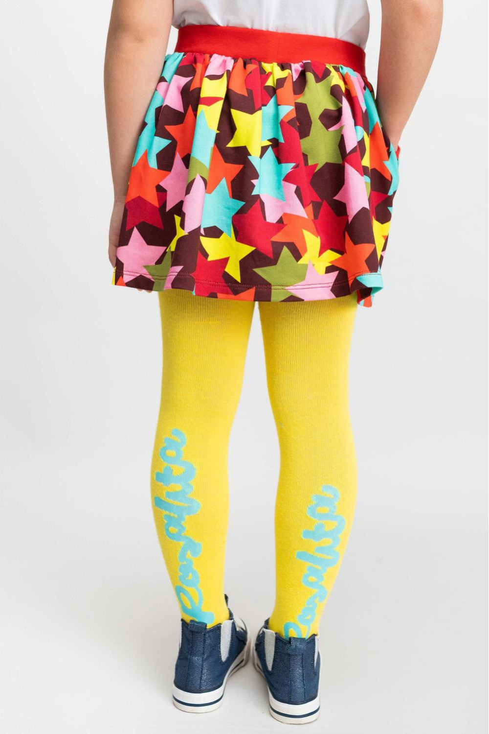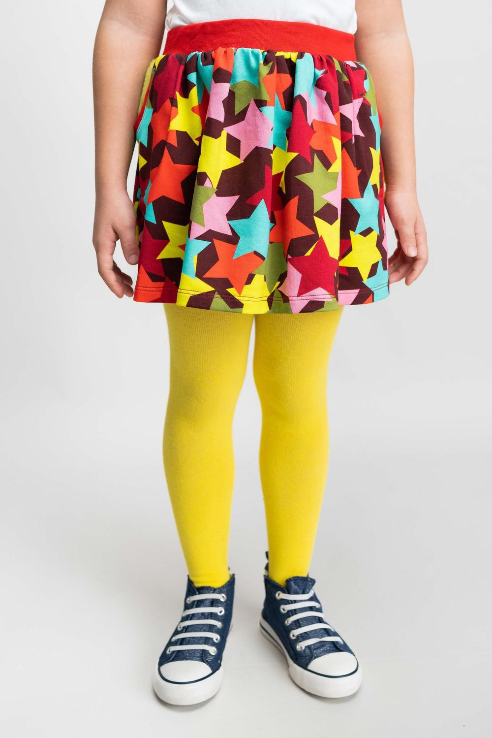 Falda fruncida con estampado de estrellas multicolor en punto camiseta con cinturilla elástica en canalé rojo y bolsillos en polar verde lima