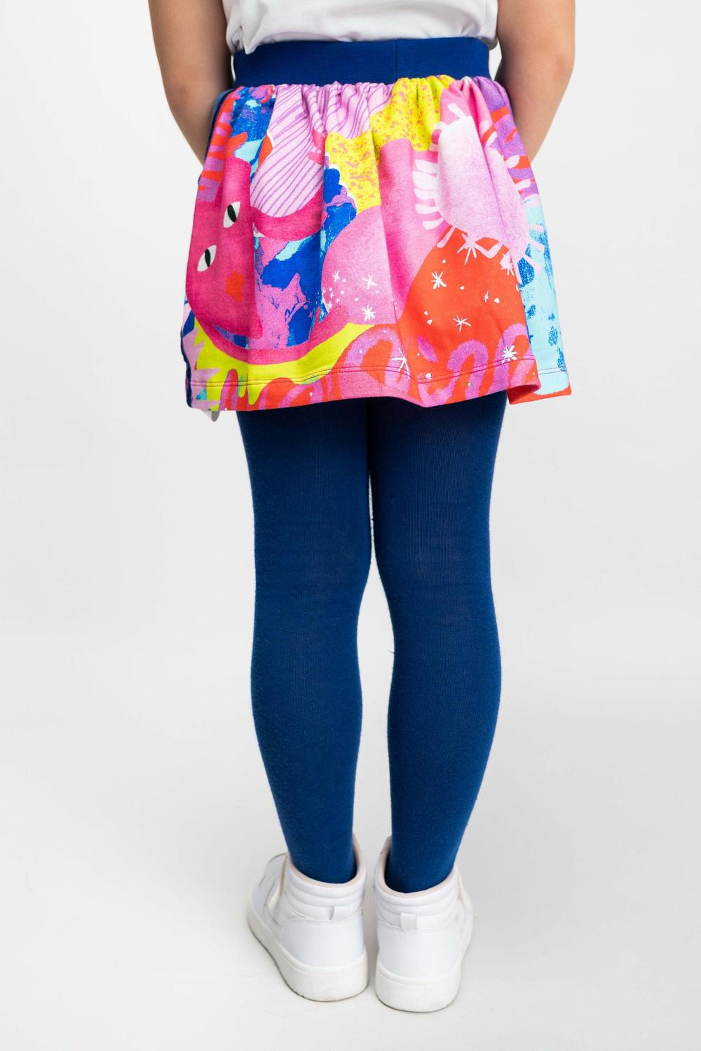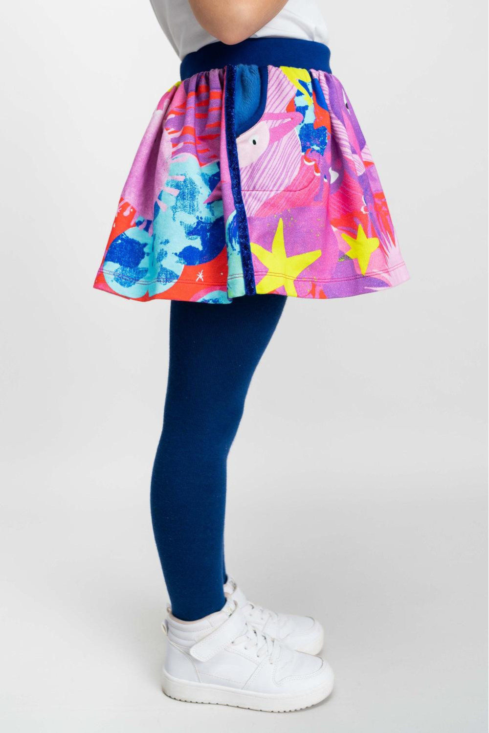 Falda funcida con bolsillos de punto camiseta con estampado gráfico multicolor contorno de bolsillos y cinturilla en terciopelo y cinta brillante en los costados